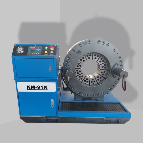 KM-91型系列重型扣壓設備,該設備針對工業大通徑扣壓管件設計,大缸徑,錐面力學轉換,扣壓力大,輕松扣壓,支持批量化作業,機頭重心低,方便管件取放,張口大,適應性強。模座間增加了彈性樹脂層,防止扣壓作業雜質掉落及惡劣工況對液壓缸的污染和損壞。雙油缸復位。尺寸調節器,可實時調整扣壓參數。